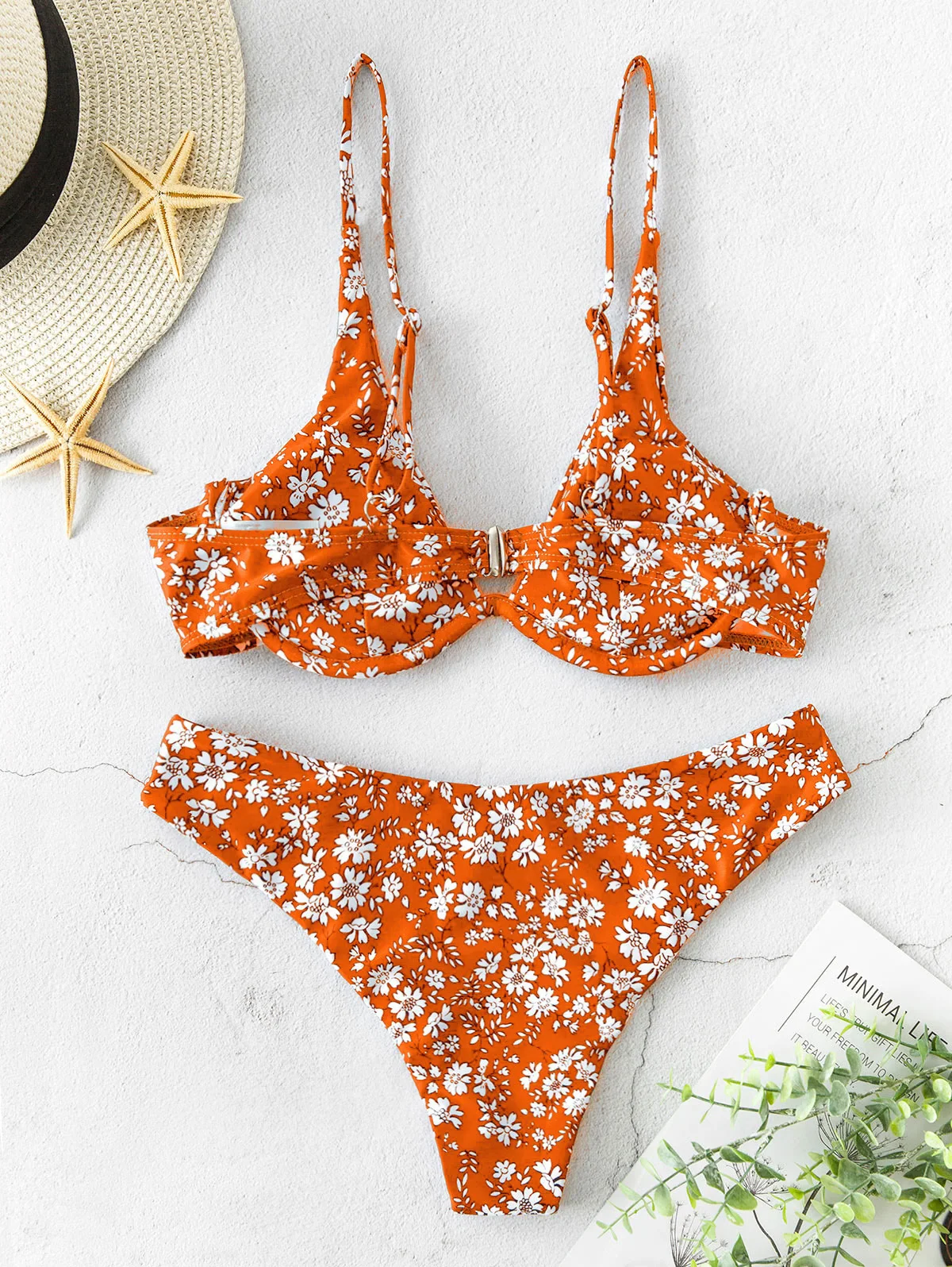 Limited Offer of ZAFUL 2020 Women Tiny Floral Underwire Cami Bikini Swimsuit Push Up Spaghetti Straps Bikini Sets Pa